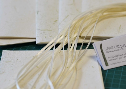 Handgeschöpftes Papier mit Fasern vom weißen und grünen Spargel & Zellstoff