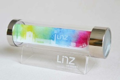 Messing, verchromt und Acrylglas - befüllt mit Fundstücken aus der Stadt Linz