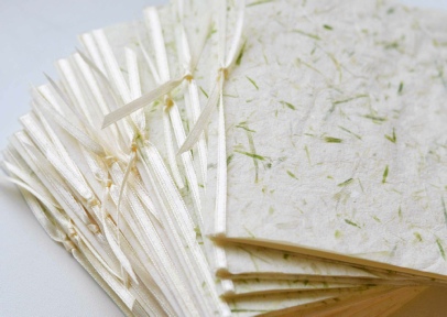 Handgeschöpftes Papier mit Fasern vom weißen und grünen Spargel & Zellstoff
